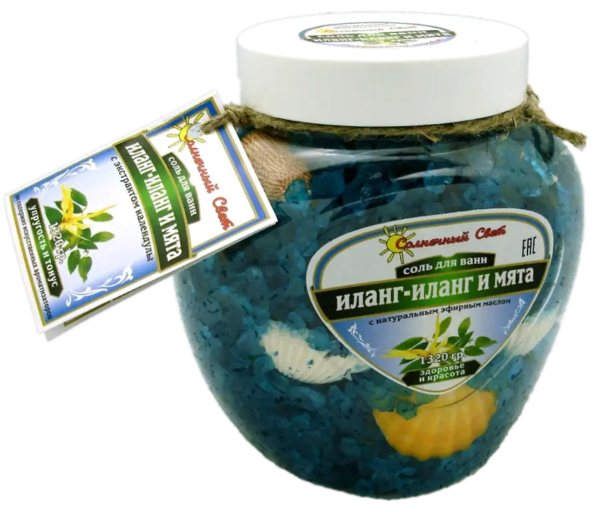 Соль для ванн Иланг-иланг и Мята 1320 гр с ракушками с ЧЗ — отзывы
